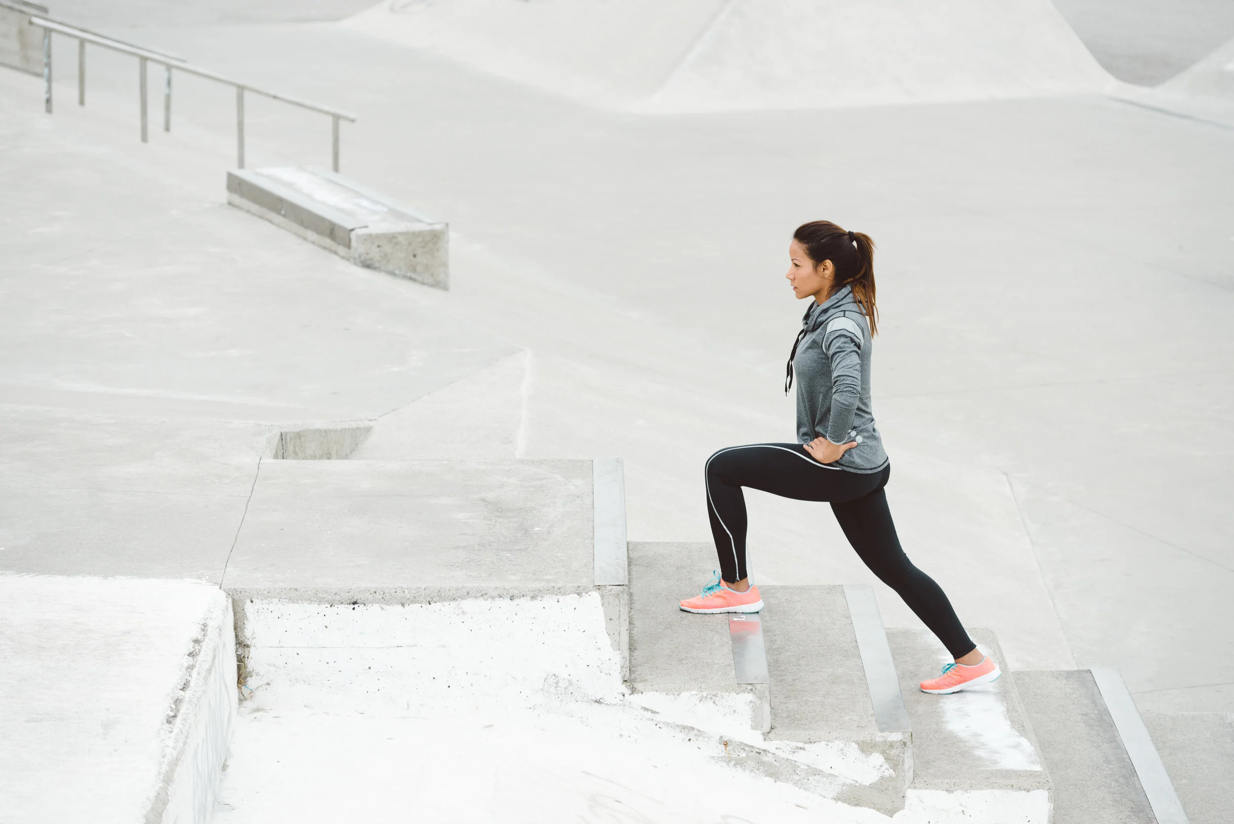 Begin by standing a few feet in front of a step and reach left foot back so toes are on the bench and heels lifted.
